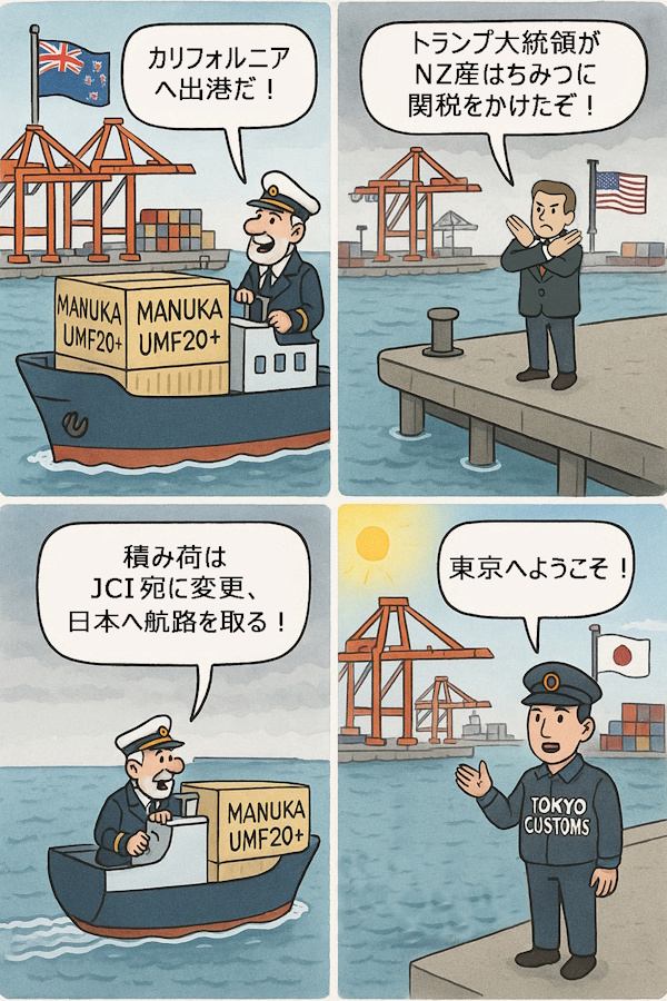 UMF20+(MGO830+に相当)のマヌカハニーは、非常に希少で高価です。15%の関税が加わると価格がさらに高騰してしまうため、アメリカへの輸出を取りやめる決断がなされました。